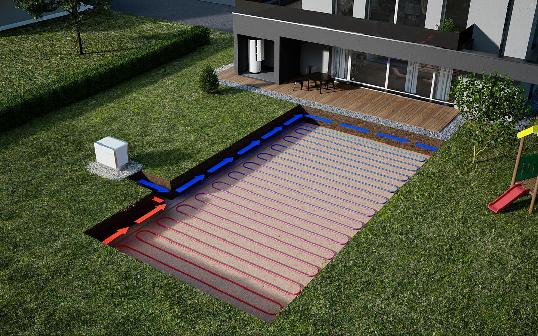 Eine Direktverdampfer-Wärmepumpe nutzt die Wärme aus dem Erdreich direkt über das Kältemittel im Rohrsystem, ohne dass ein zusätzlicher Wärmeträger (wie Sole) notwendig ist. Dadurch können besonders hohe Effizienzwerte erreicht werden, da Energieverluste auf dem Wärmetauscherweg minimiert werden.